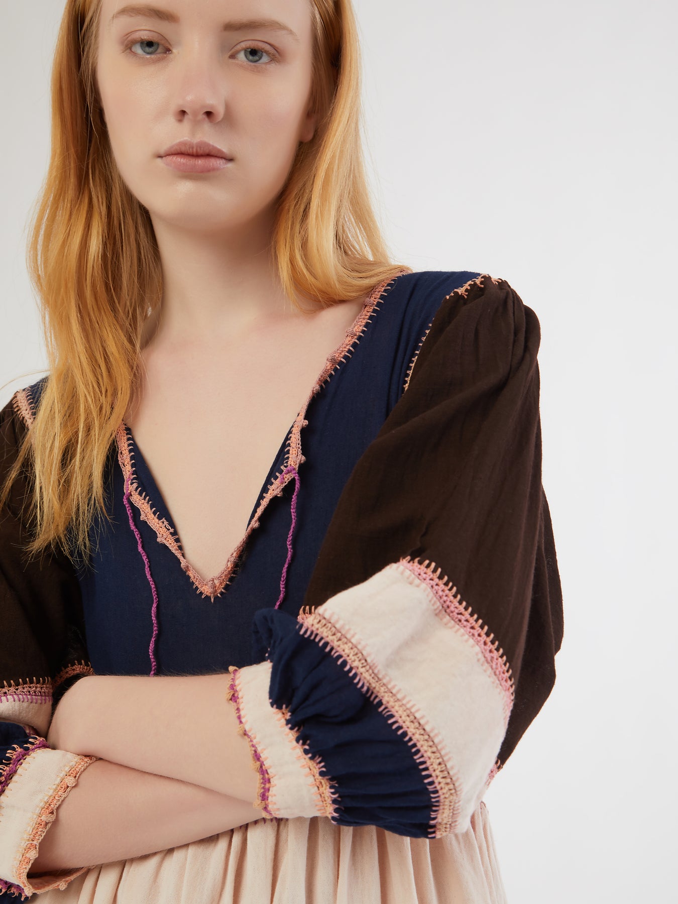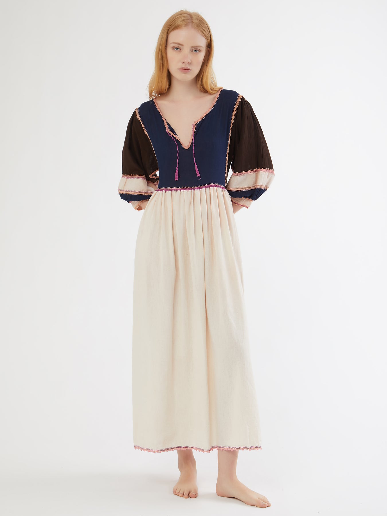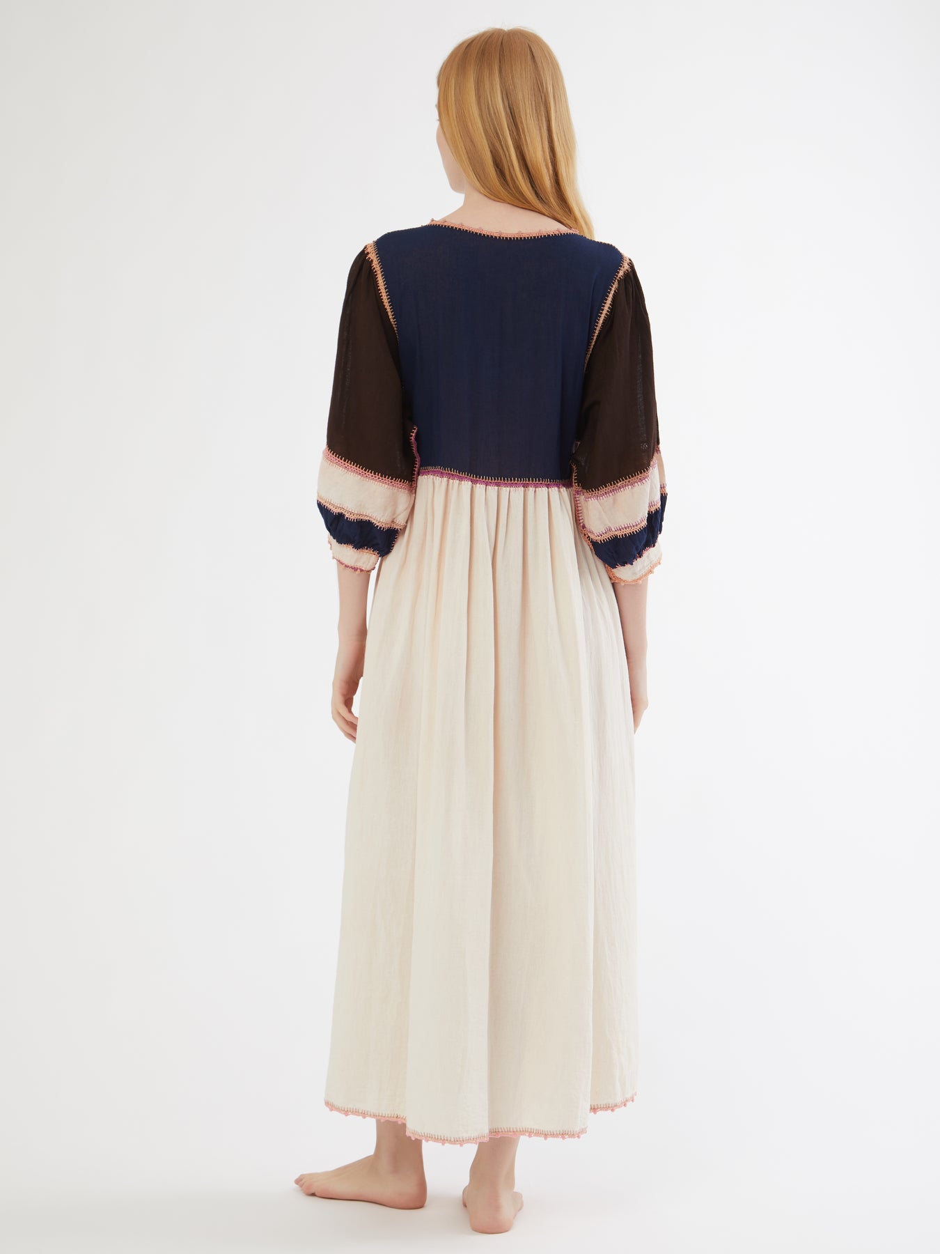 The Zapoteca Dresses are entirely handmade in San Juan del Río in the Oaxaca region. Its airy and bohemian silhouette is made in 100% cotton fabric, featuring colored details knitted with crochet and cotton yarns. Each handwoven detail tells a story of heritage and tradition, transforming every piece into a joyful yet elegant expression of craft.