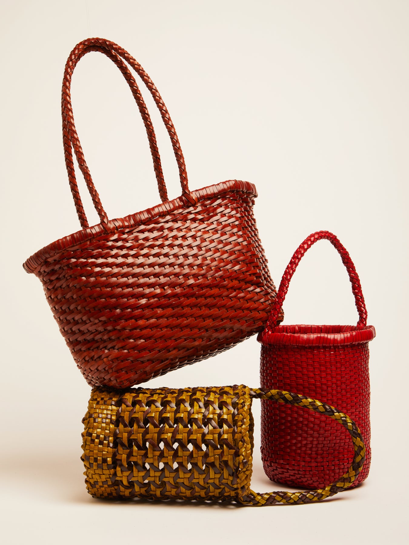 Crafted from soft leather, tightly handwoven into a dense weave, this bag combines durability with sophistication, finished with braided handles that add a touch of natural elegance.