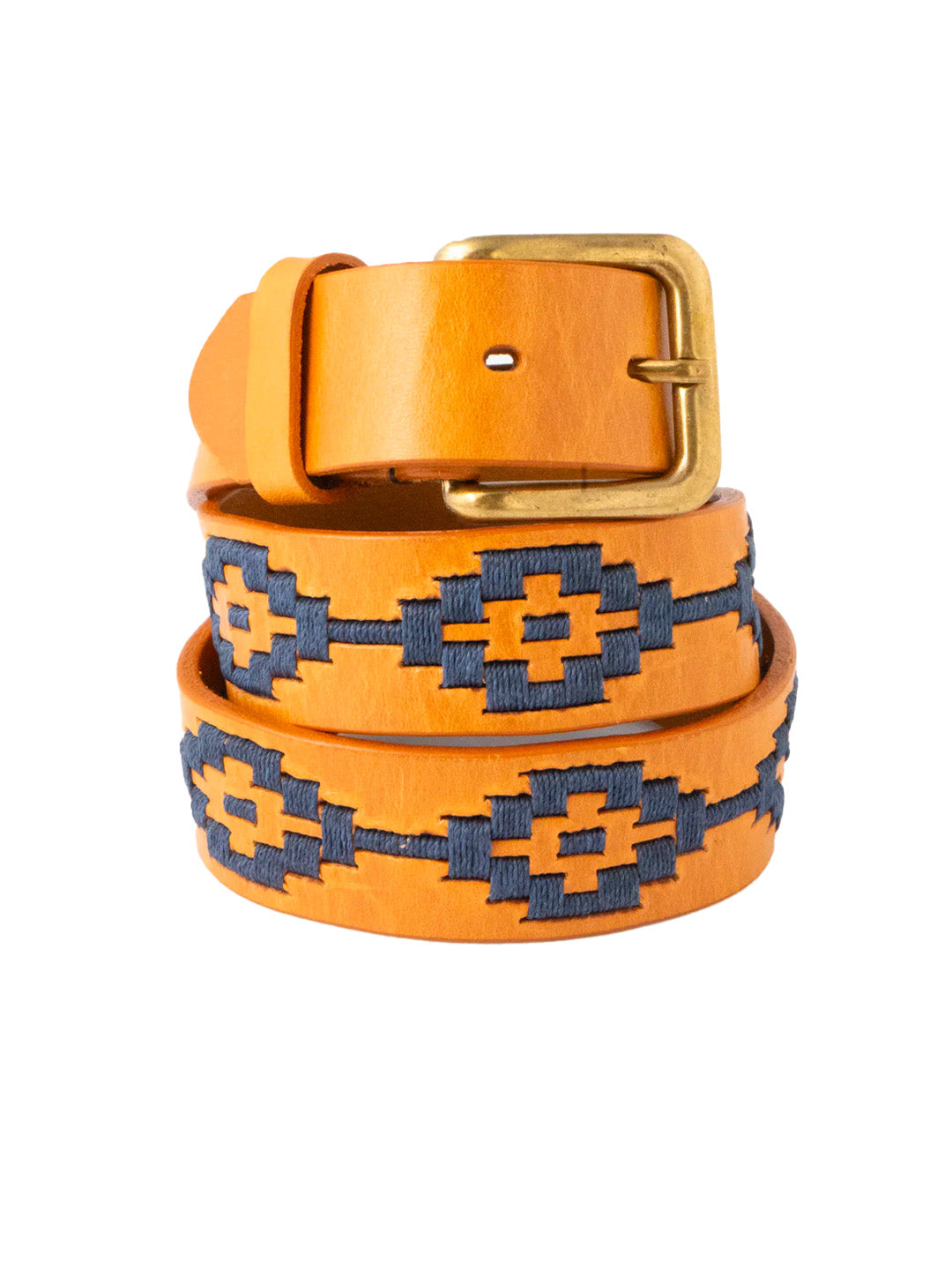 Original, handmade Argentinian belts made in genuine, vegetable-tanned leather and embroidered by hand with high-density packed yarn. The troughs and diamonds in the designs are said to represent the colossal peaks of the Andes. These belts are called Polo belts because they are used to match team colors. Choose yours to blend in with your outfit or your mood!