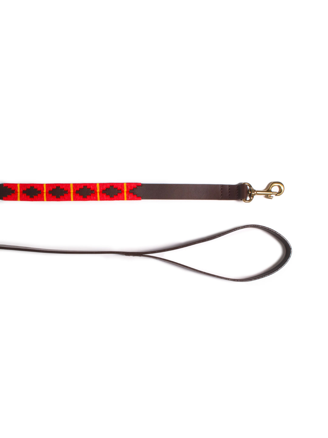 Original, handmade Argentinian dog lead made in genuine, vegetable-tanned leather and embroidered by hand with high-density packed yarn. The troughs and diamonds in the designs are said to represent the colossal peaks of the Andes. Match your lead with the collar and make your pet cool!