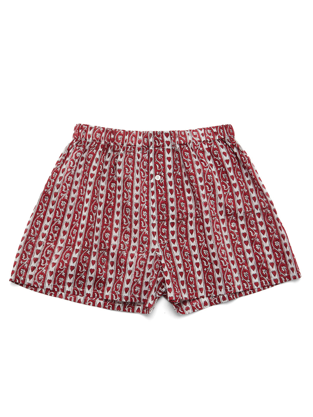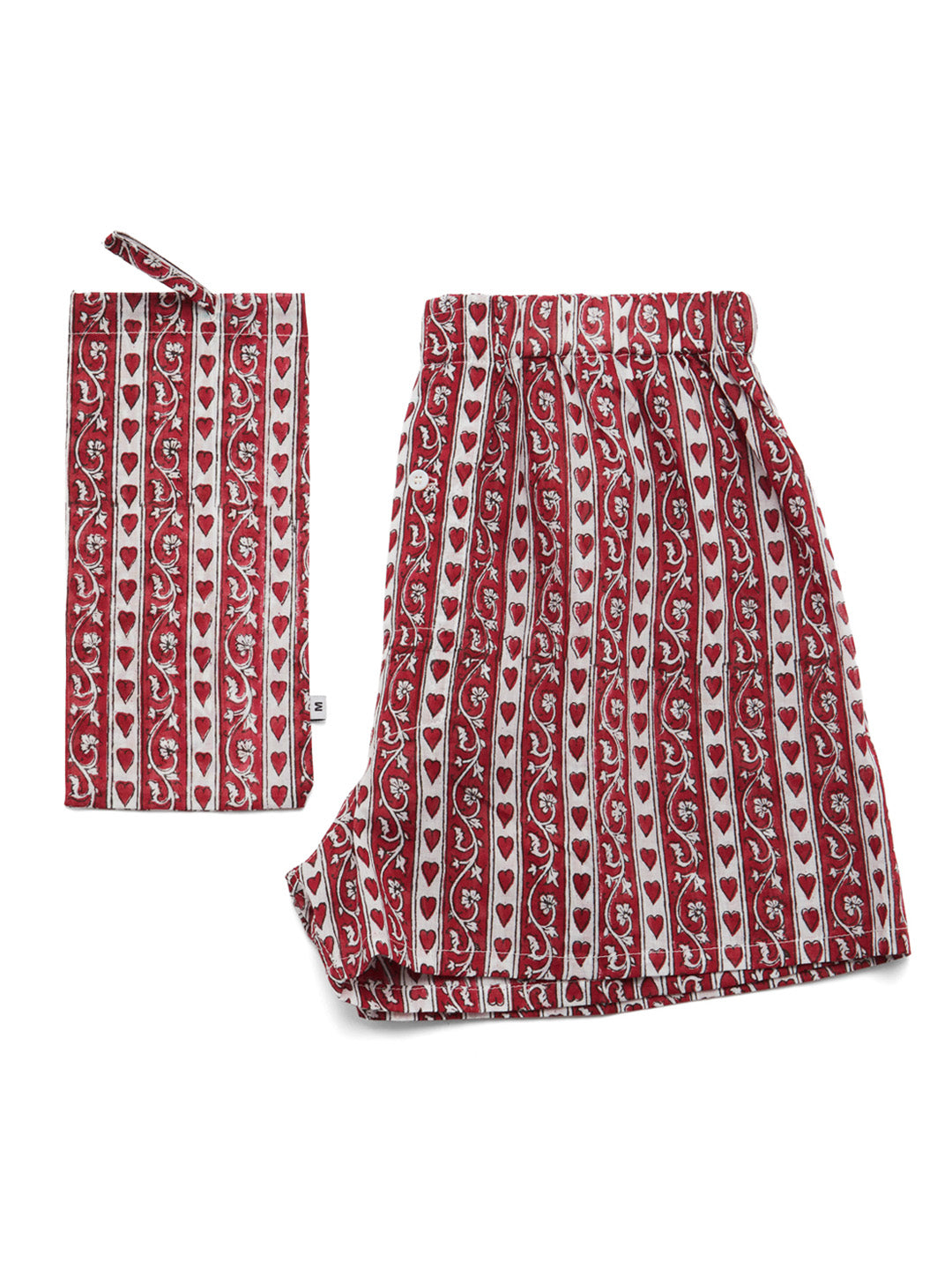 The Indian cotton men’s boxers are part of an exclusive loungewear capsule collection, handmade in India by local artisans using the traditional block print technique. The designs feature both nature-inspired motifs and timeless stripes, creating a distinctive and refined look. Crafted for comfort and style, these boxers perfectly match the women’s and kids’ pajamas—ideal for a coordinated family outfit. Perfect for him… and just as lovely on her.