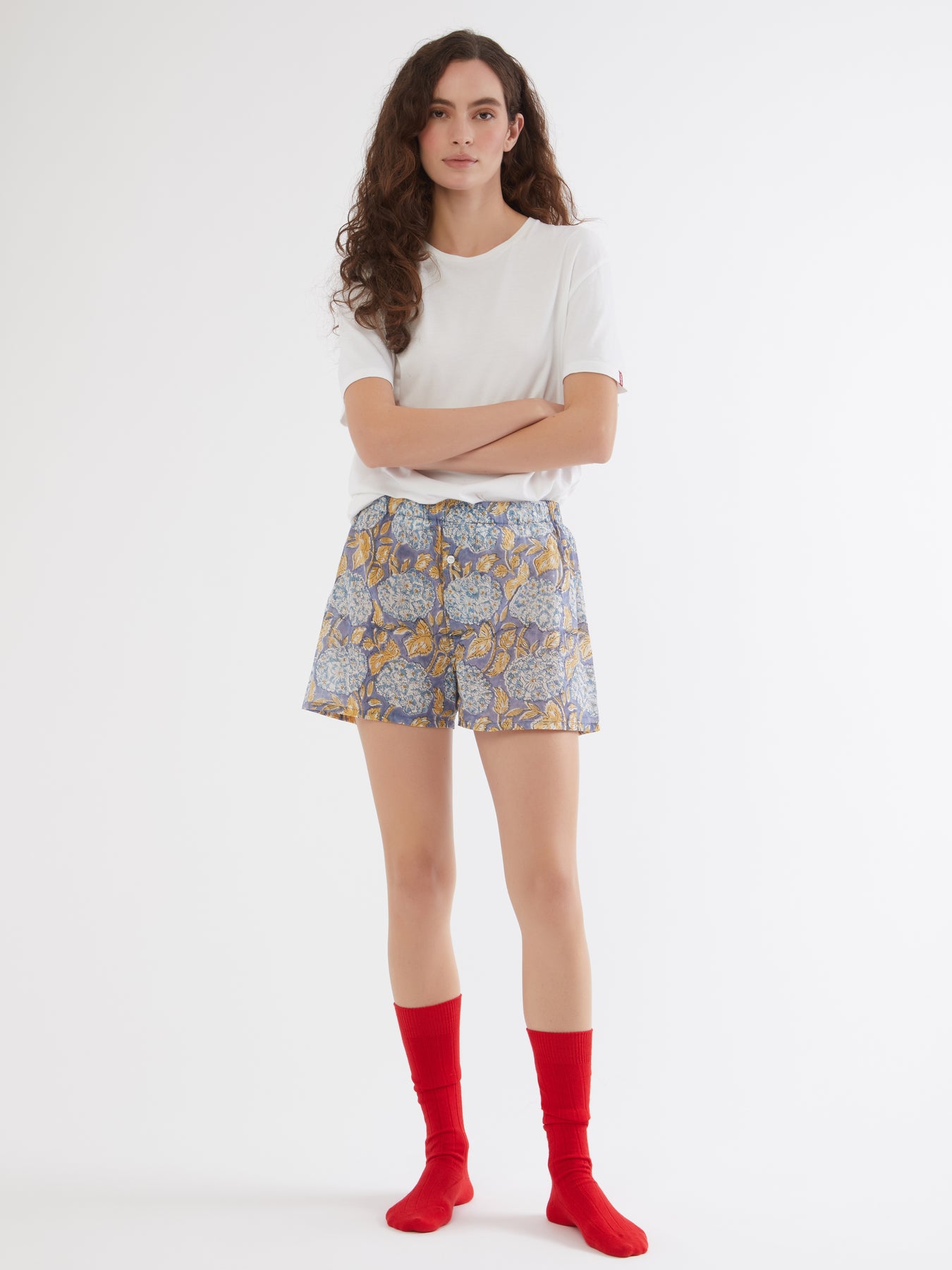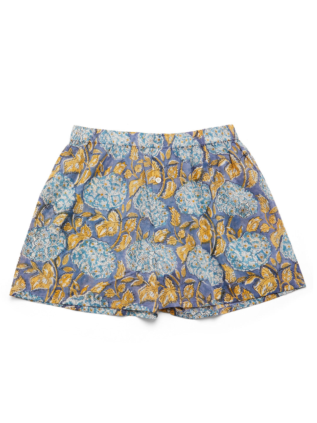 The Indian cotton men’s boxers are part of an exclusive loungewear capsule collection, handmade in India by local artisans using the traditional block print technique. The designs feature both nature-inspired motifs and timeless stripes, creating a distinctive and refined look. Crafted for comfort and style, these boxers perfectly match the women’s and kids’ pajamas—ideal for a coordinated family outfit. Perfect for him… and just as lovely on her.