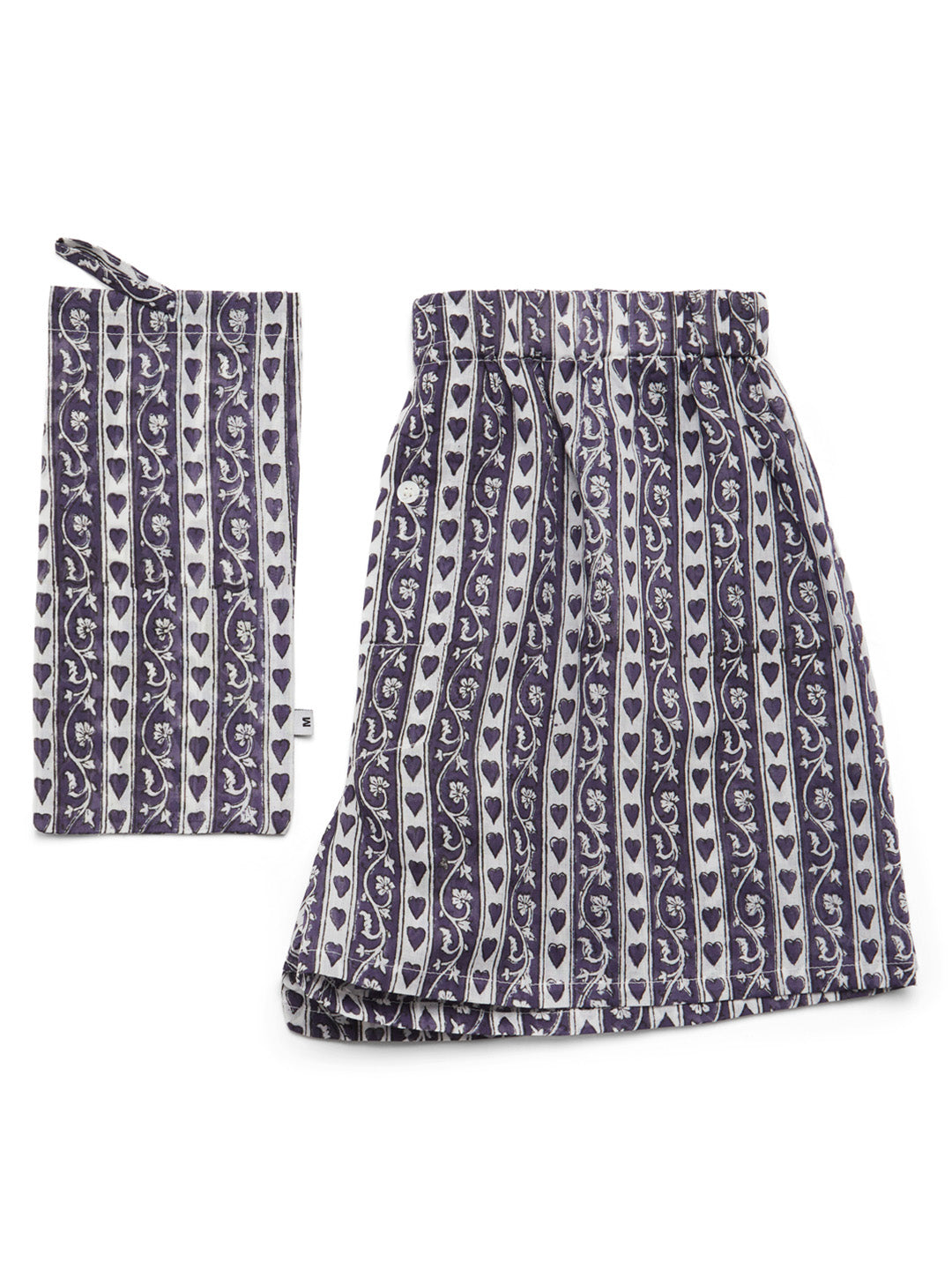 The Indian cotton men’s boxers are part of an exclusive loungewear capsule collection, handmade in India by local artisans using the traditional block print technique. The designs feature both nature-inspired motifs and timeless stripes, creating a distinctive and refined look. Crafted for comfort and style, these boxers perfectly match the women’s and kids’ pajamas—ideal for a coordinated family outfit. Perfect for him… and just as lovely on her.