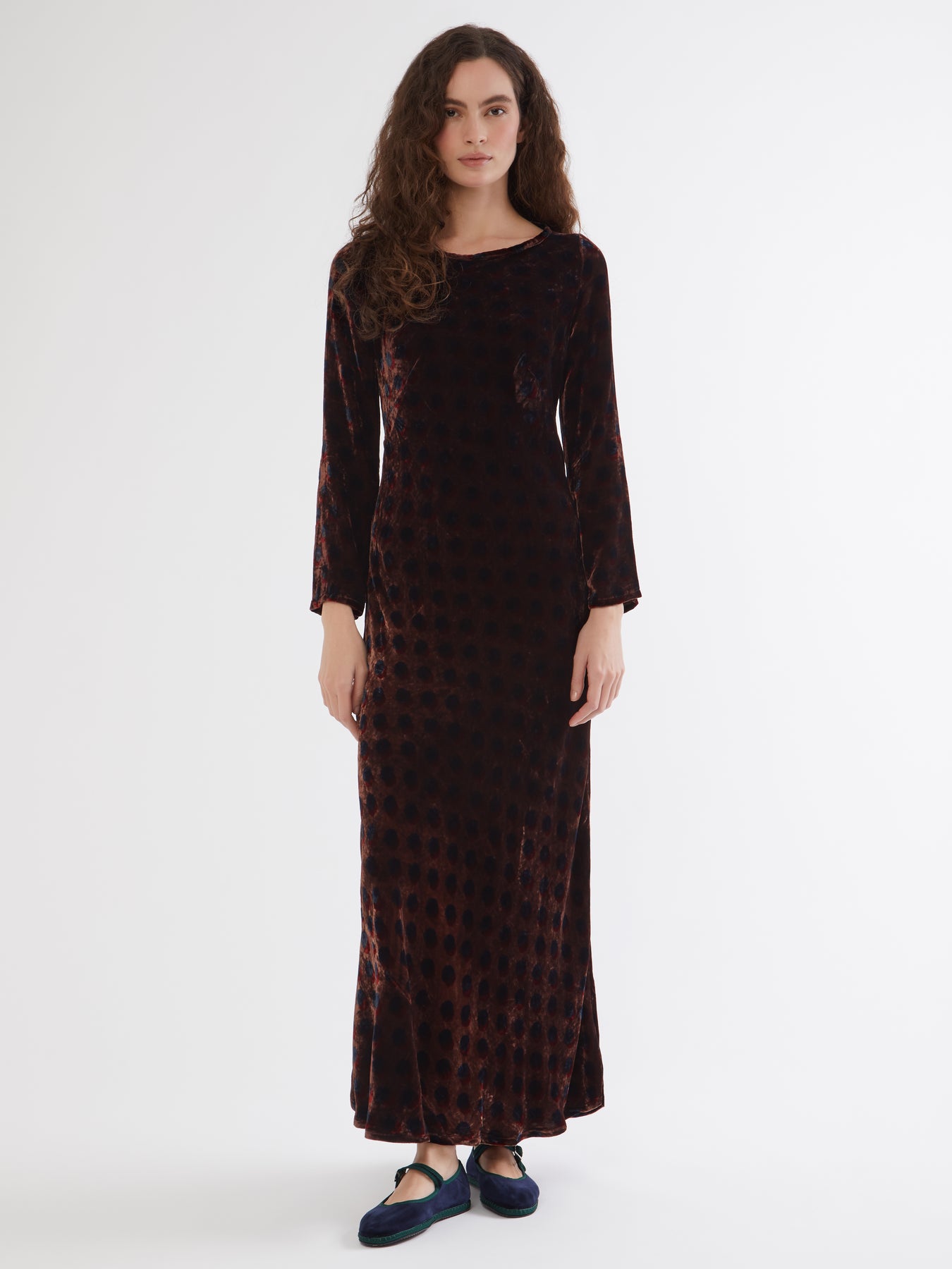 The Indian Didi dress is entirely made by hand by Indian artisans using silk velvet hand printed with the ancient technique of block print. These pieces are biased cut to naturally adjust to every shape and size. Its midi length makes it perfect for every occasion: from any casual event wear it with your favorite pair of boots or for more elegant occasions with a sexy pair of heels. In any way, the Indian Didi dress will look perfect on you.